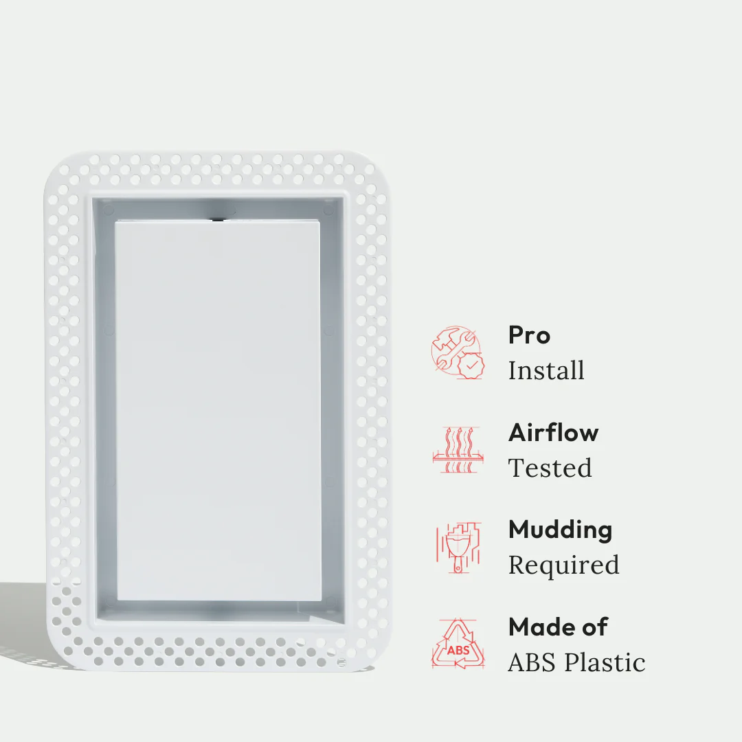 More low-profile than our Framed model, the Flush is a refined upgrade that seamlessly integrates into the wall. Pro install in 30 minutes. Requires drywall mudding. Drywall and HVAC-compatible.